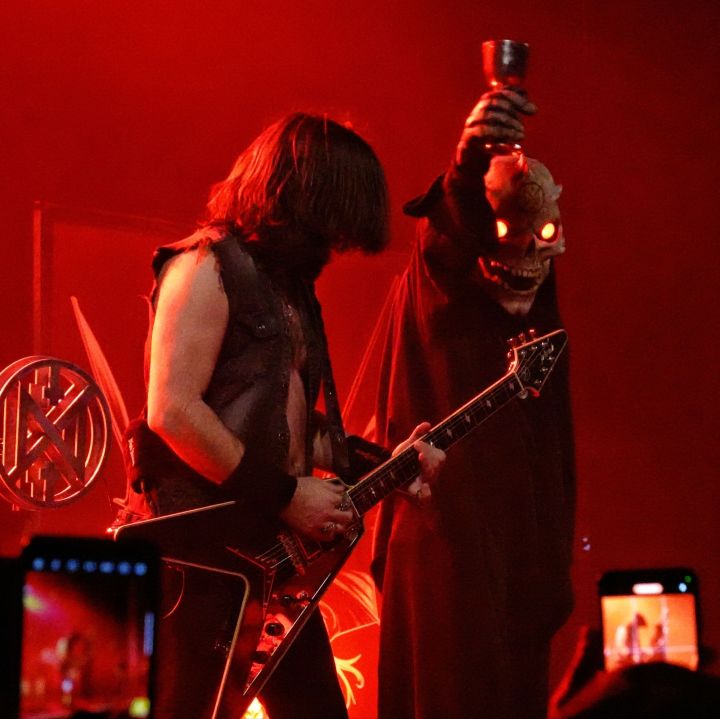The Bassist and vocalist Jarvis Leatherby and the guitarist Armand John Anthony move energetically from one side of the stage to the other, playing together in sync, headbanging and brandishing guitars in the air. Euphoric energy!