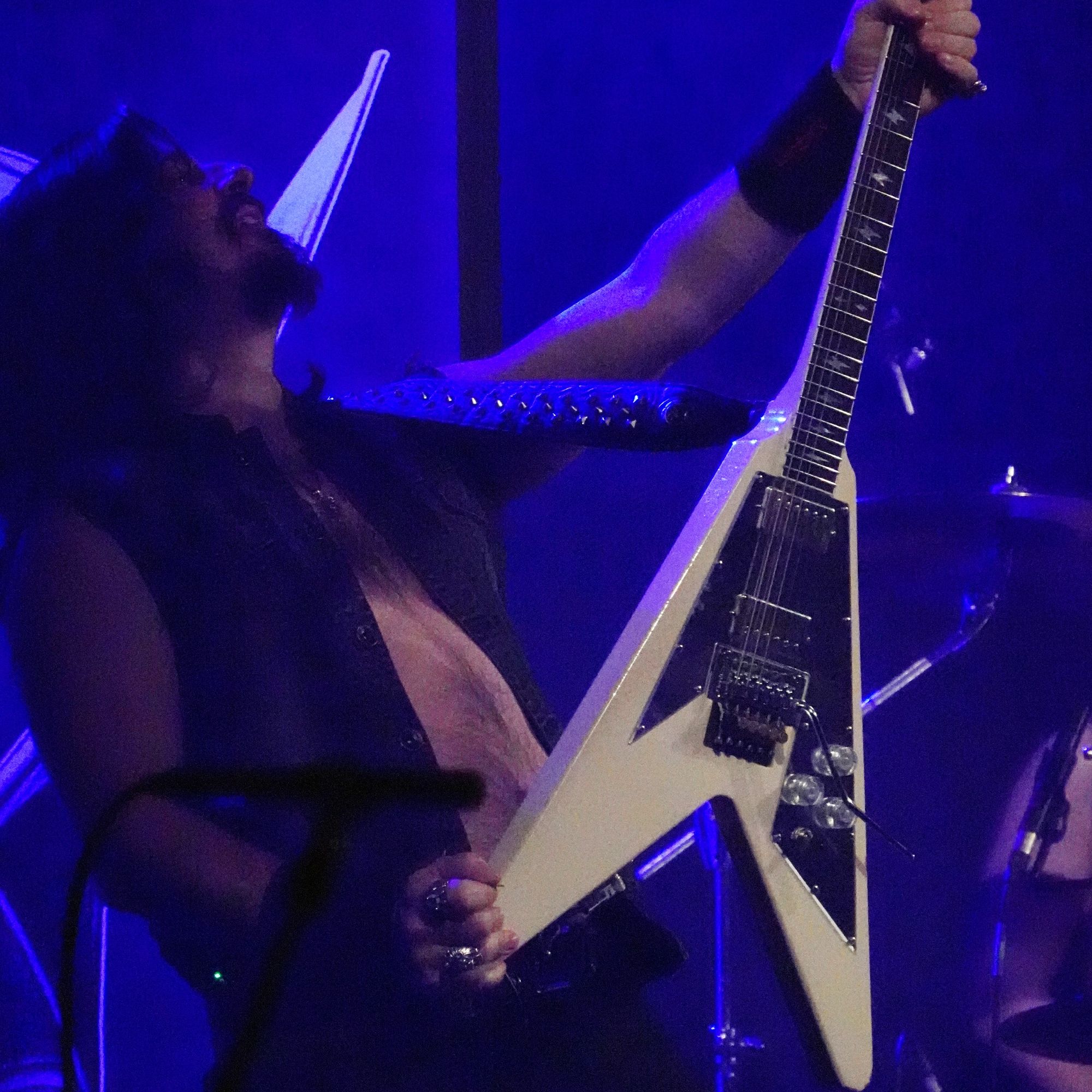 Le trio californien ouvre son show avec la chanson titre de leur dernier album Outsider, sorti en 2023qui nous plonge rapidement dans leur univers heavy metalold school influencé par la NWOBHM : Riffs métal classiques et des guitares Flying V, des rythmiques tonitruants et des voix puissantes.