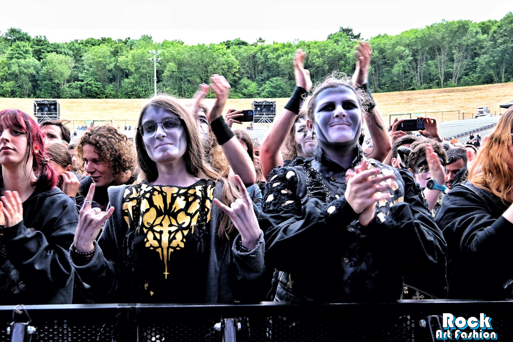 Des visages peints, des T-Shirt à l’effigie du groupe peuplent la fosse quasi pleine. L’impatience se fait entendre de plus en plus.