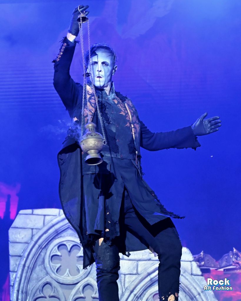 Roel van Helden goes wild behind his impressive drums while Falk Maria lets loose on his synth when he’s not coming to the front of the stage to swing a censer or interact with the audience and his bandmates.
