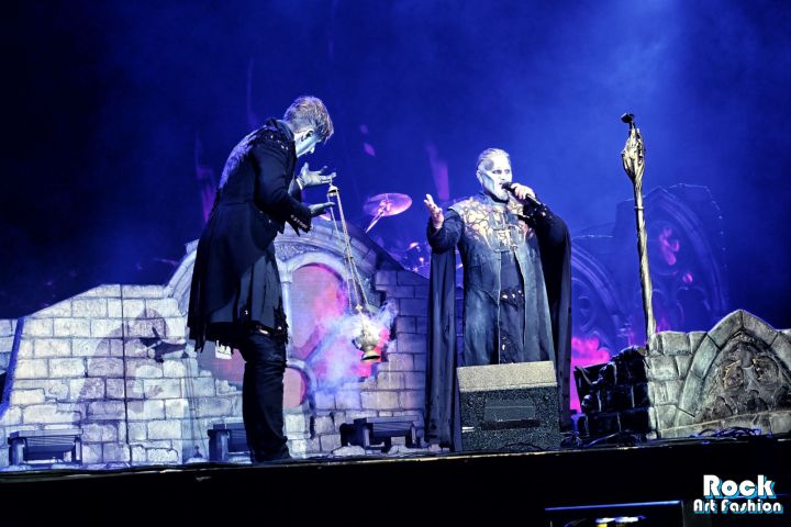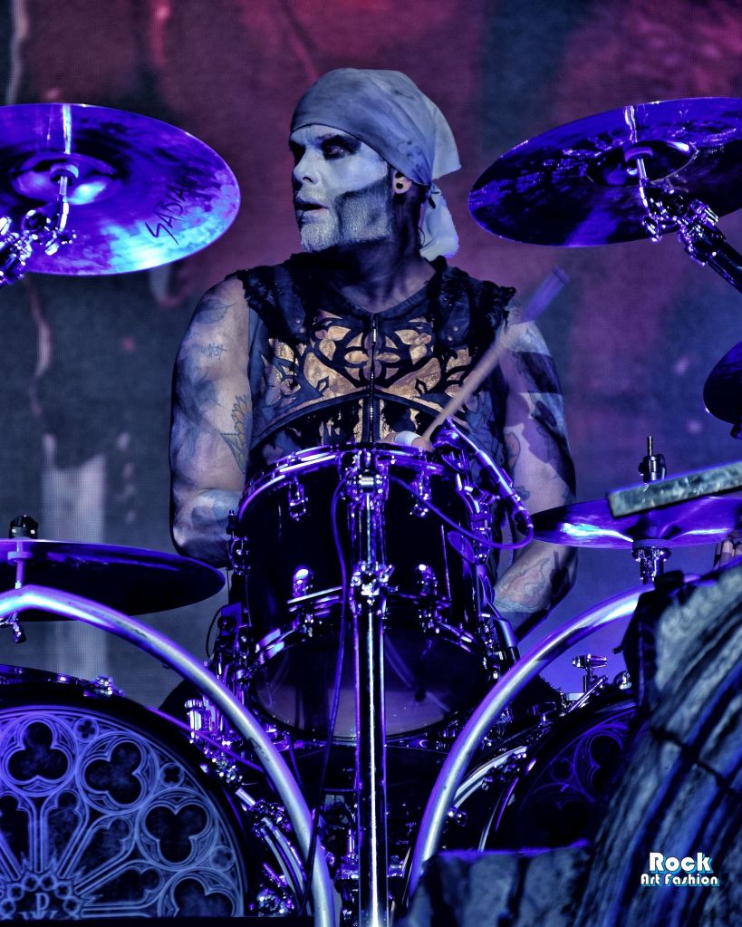 Roel van Helden se déchaine derrière son impressionnante batterie alors que et Falk Maria se lâche sur son synthé quand il ne vient pas devant la scène pour balancer un encensoir ou interagir avec le public et se camarades de groupe.