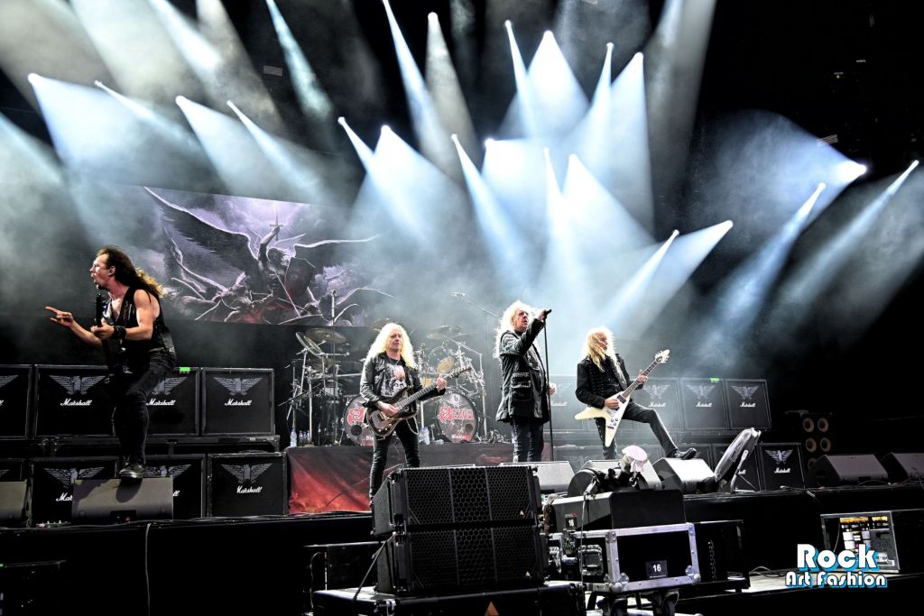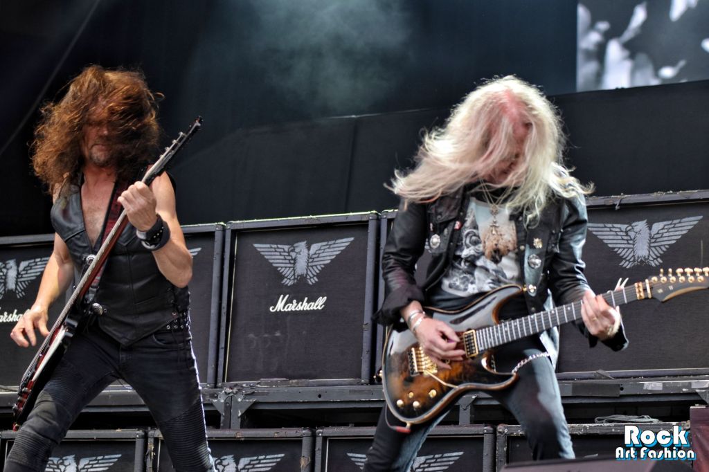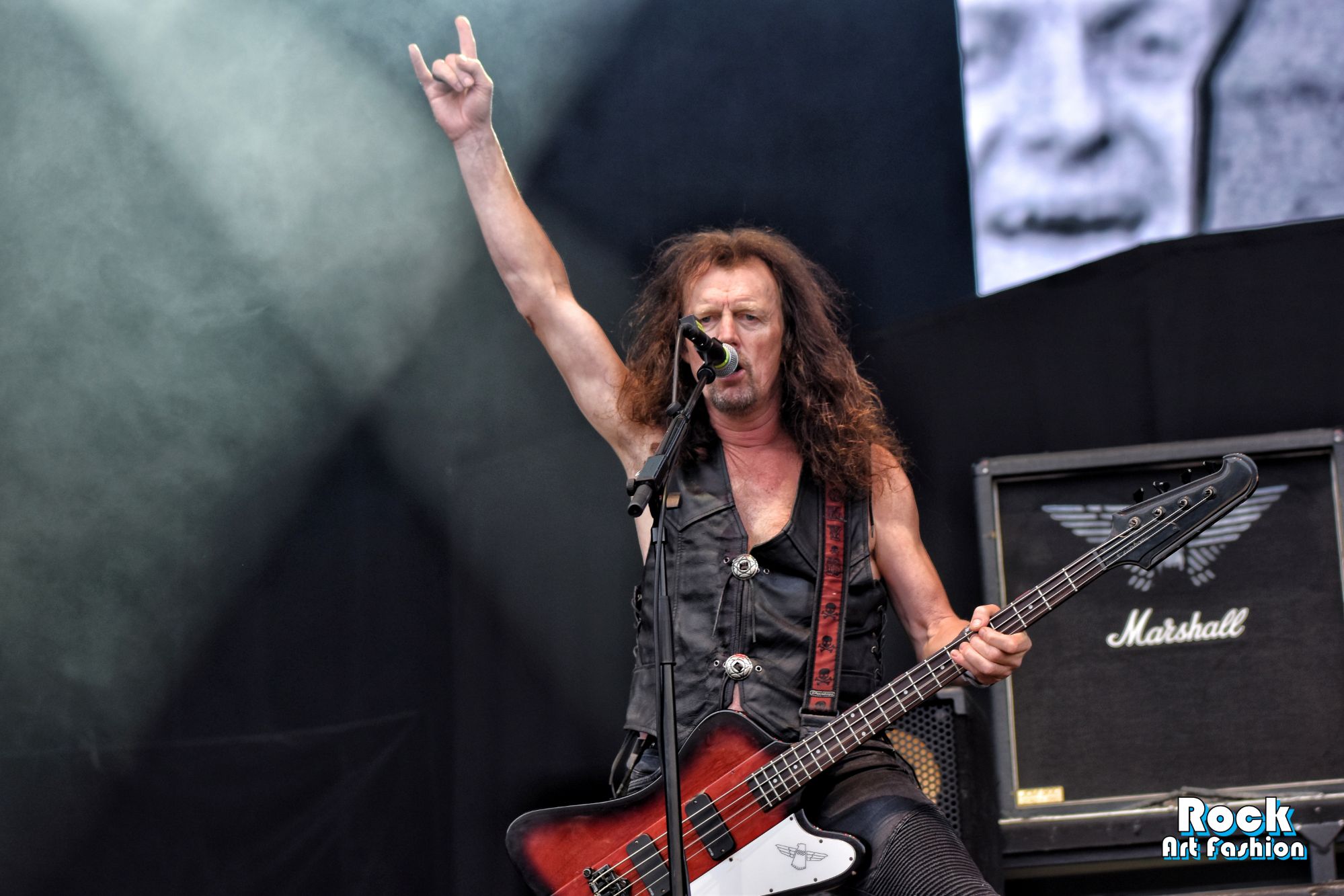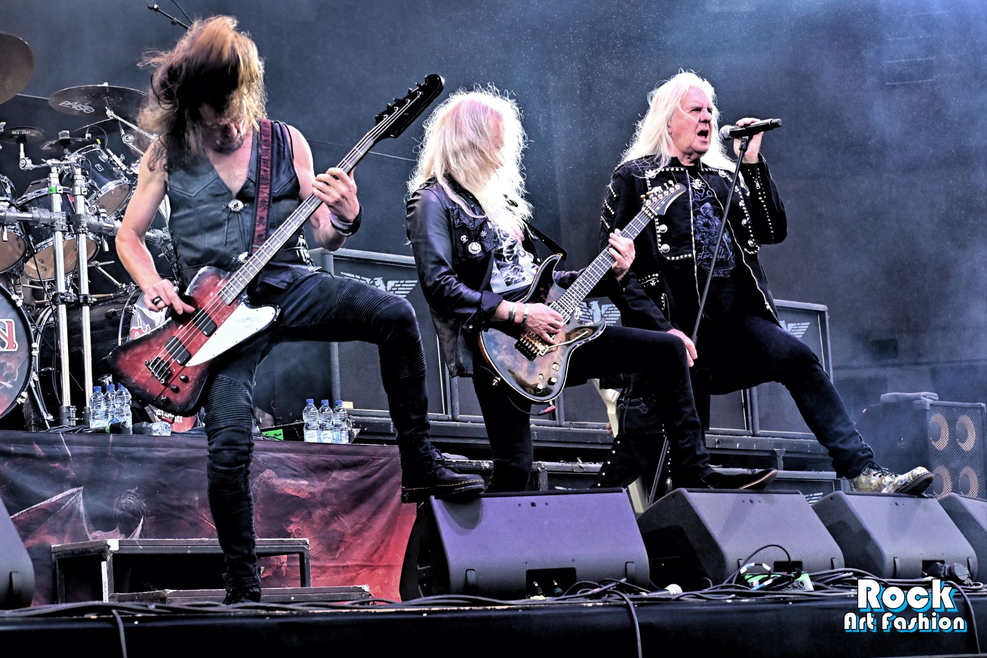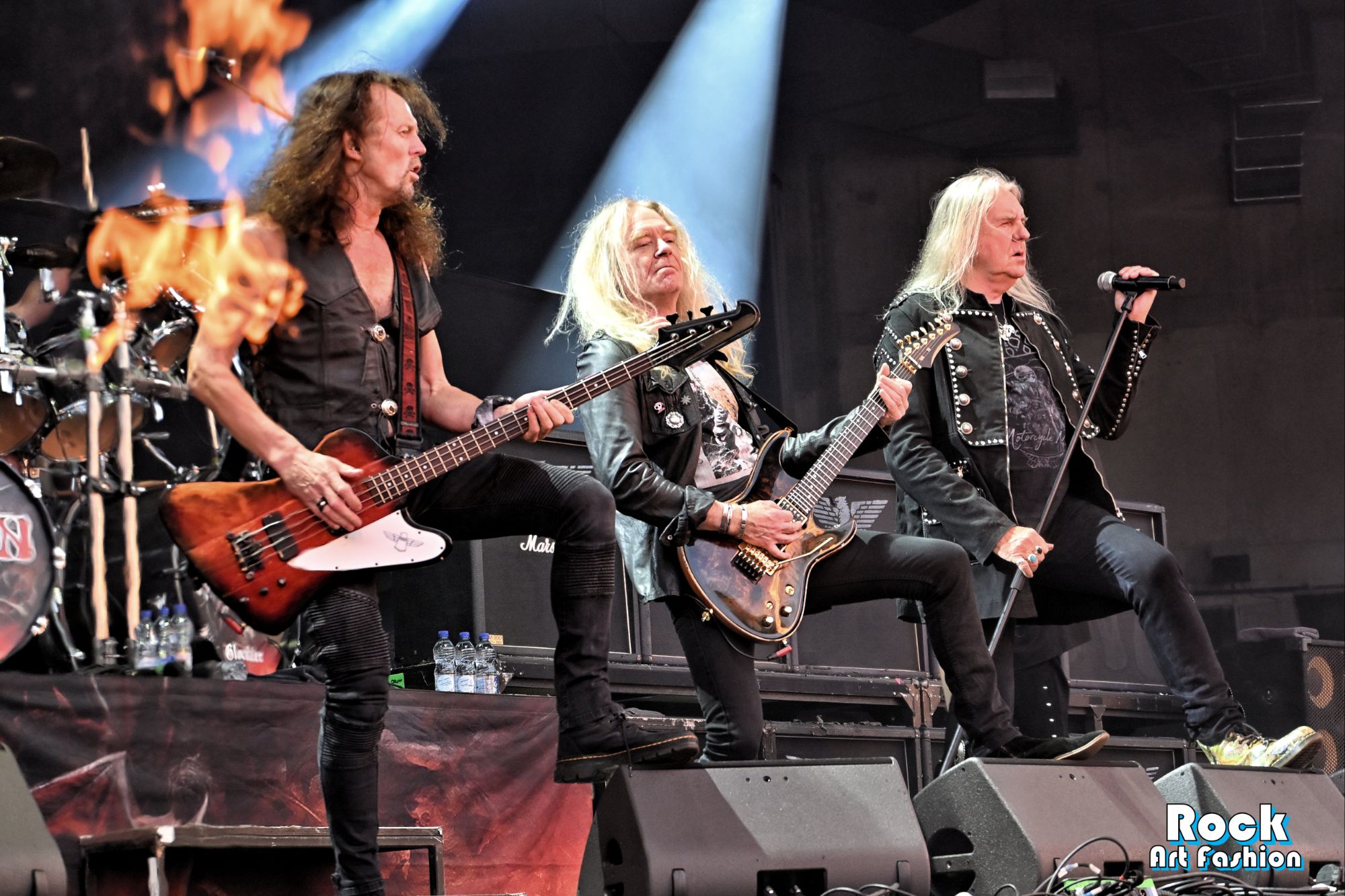 If the band starts with Hell, Fire And Damnation“, in a fiery atmosphere, taken from the latest album, the veterans of the New Wave of British Heavy Metal (NWoBHM) invite us tonight to a musical journey through the ages. A great summary of their impressive 50-year career in 15 songs.