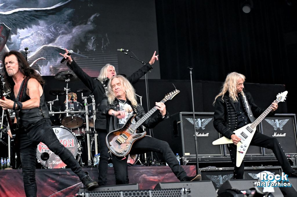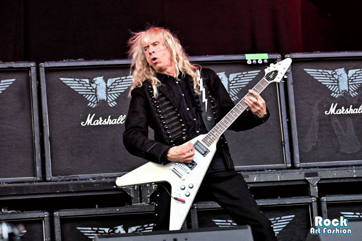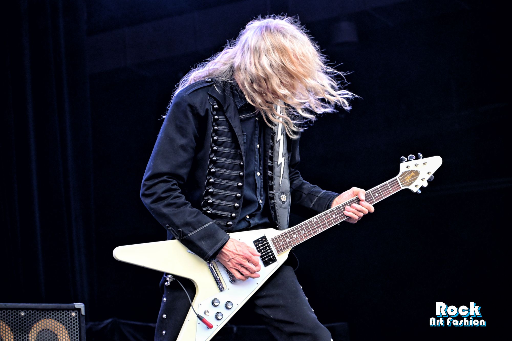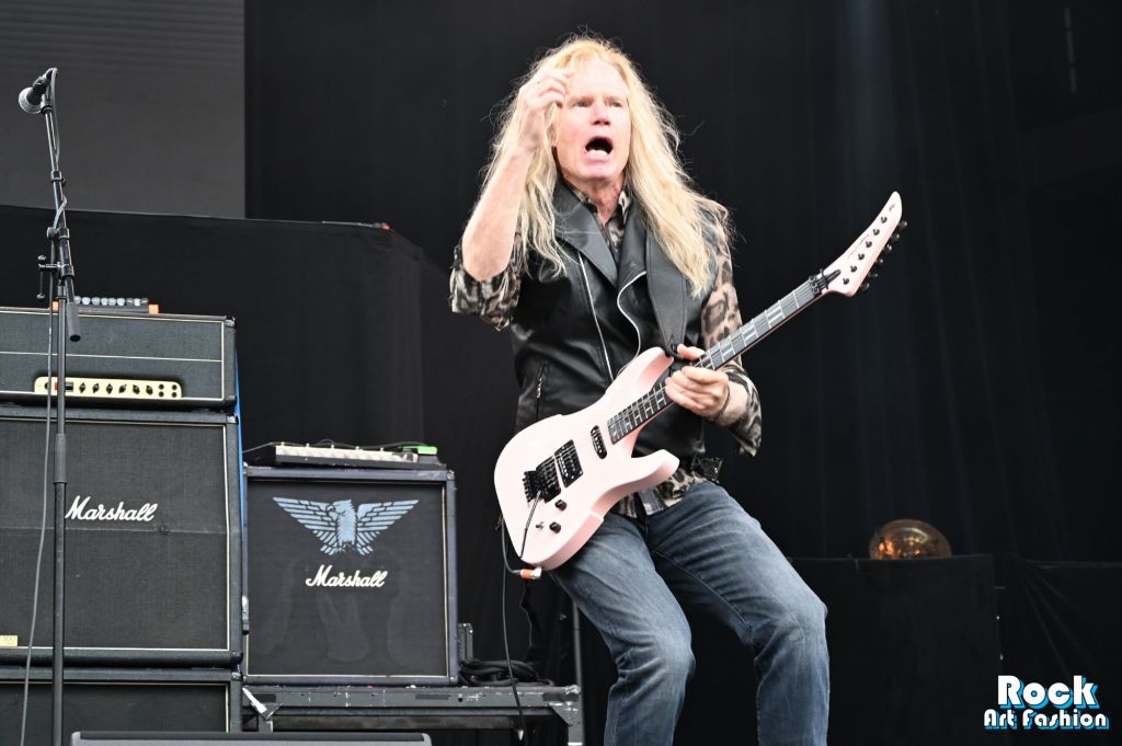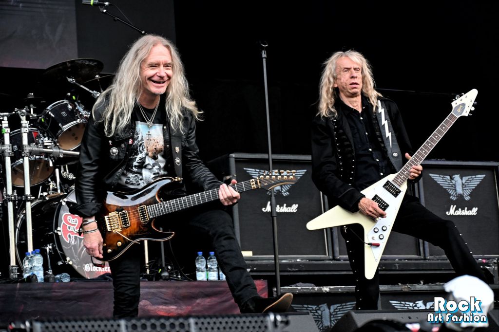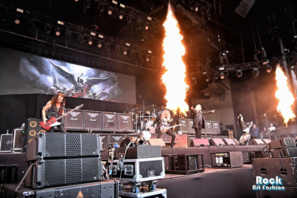 If the band starts with Hell, Fire And Damnation“, in a fiery atmosphere, taken from the latest album, the veterans of the New Wave of British Heavy Metal (NWoBHM) invite us tonight to a musical journey through the ages. A great summary of their impressive 50-year career in 15 songs.