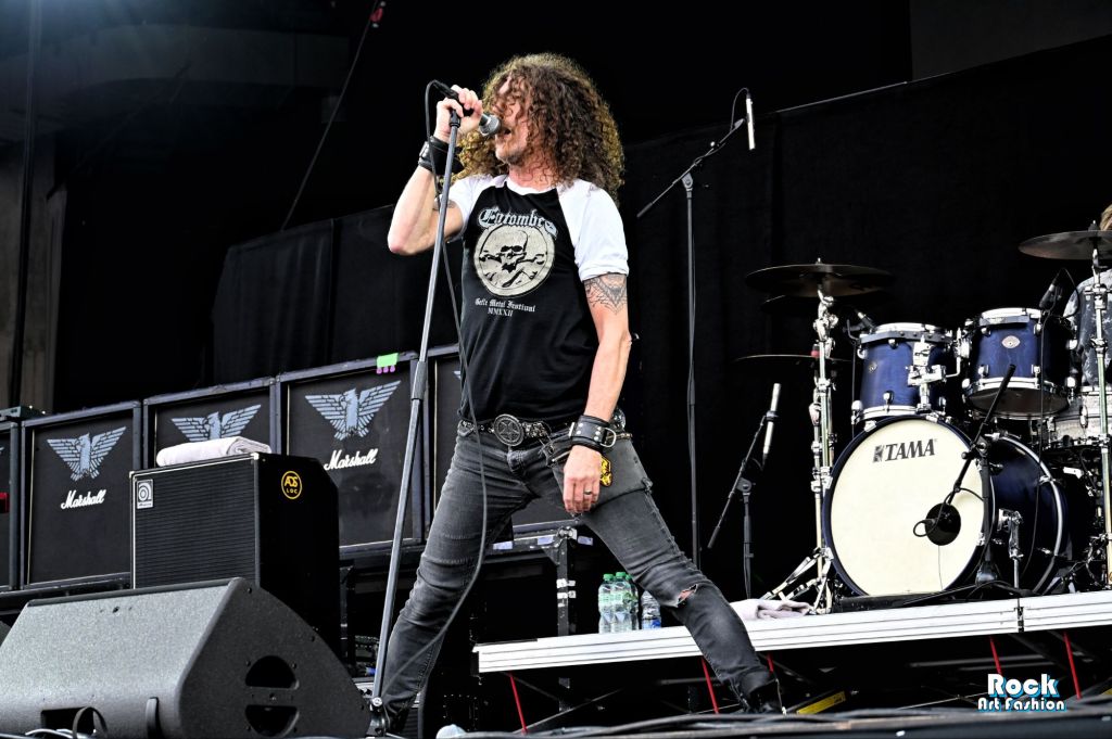 The rhythm section is thunderous: Nigel Glockler hammers his drums with all his strength and the very dynamic Nibbs Carter on bass, headbangs and runs through all stages.