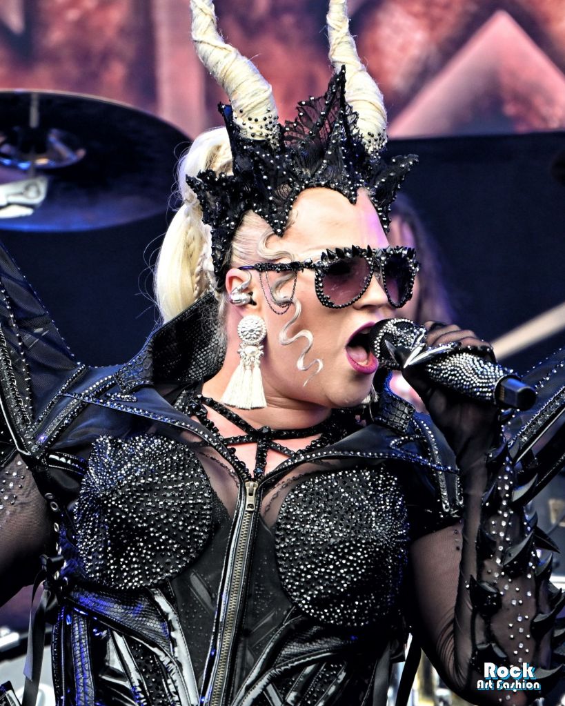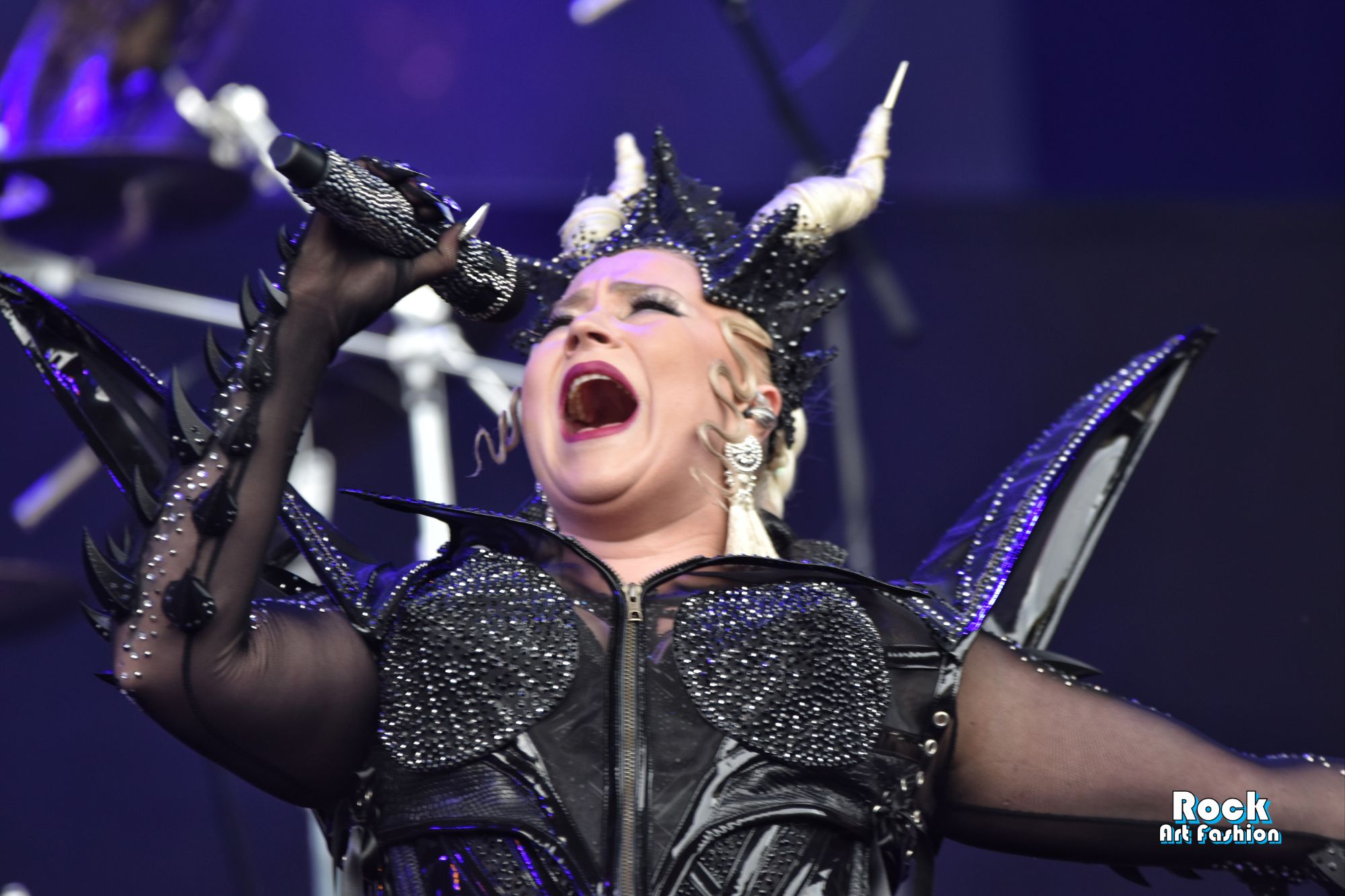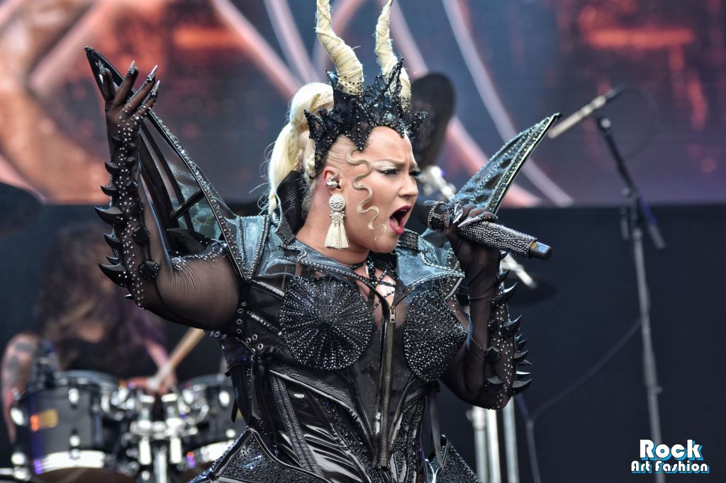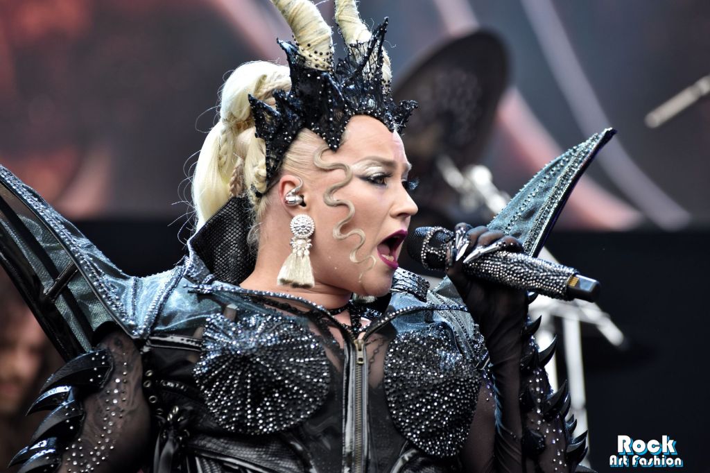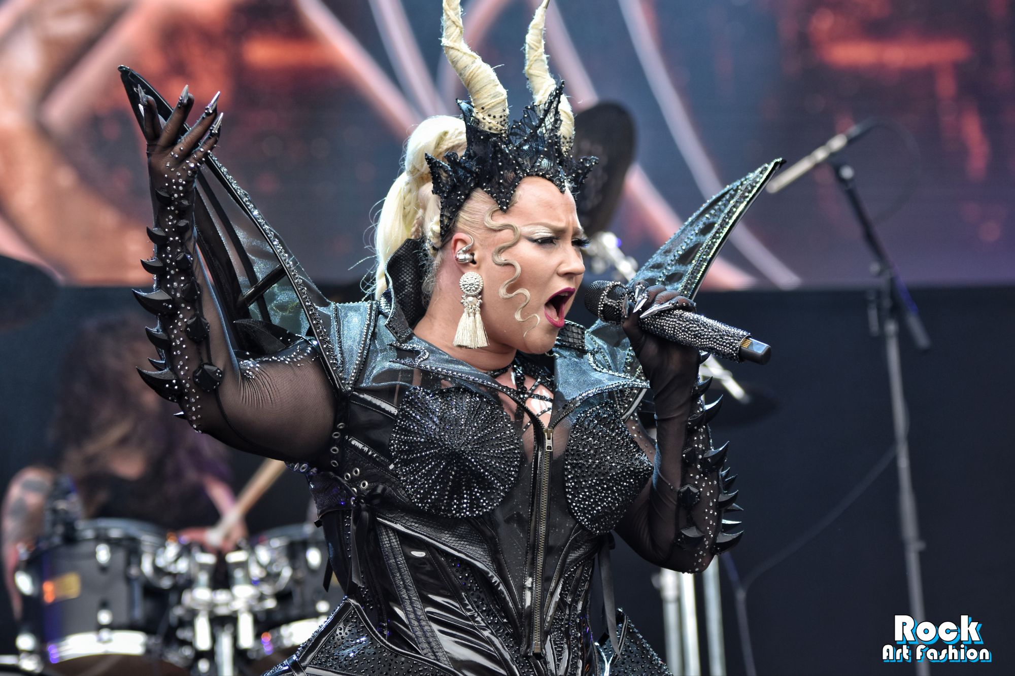 Deuxième sur scène à 18h30, le groupe finlandais Battle Beast sera une grande découverte pour moi. 15 ans d’existence, 6 albums à leur actif, le combo emmené par chanteuse Noora Louhimo, va nous offrir un puissant mix de heavy et de power métal tendance symphonique combiné à des éléments pop très rythmés et surtout des refrains accrocheurs imparables.