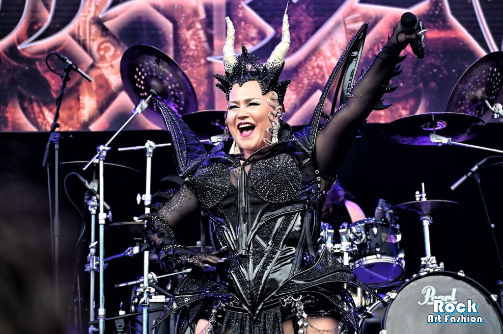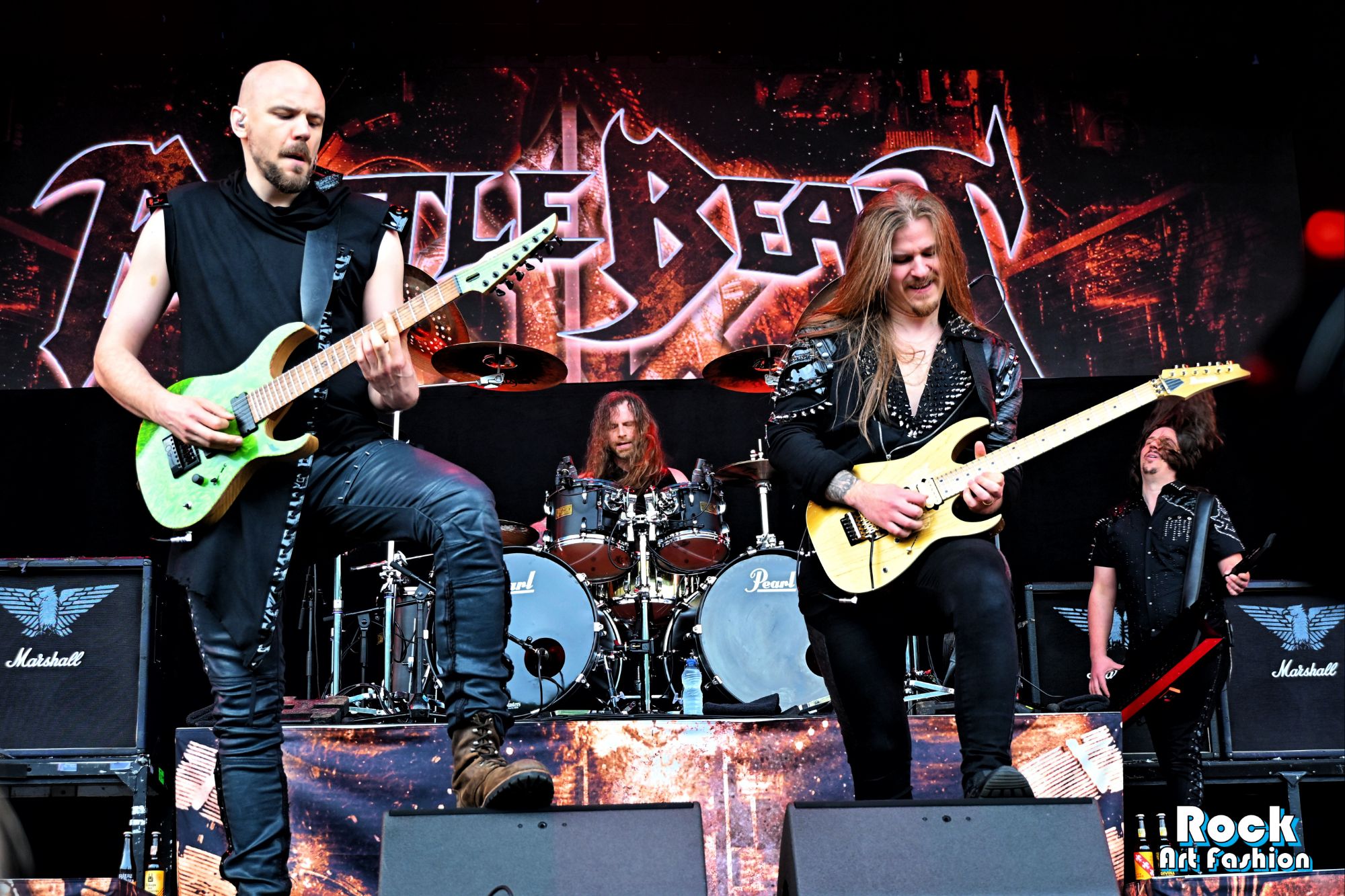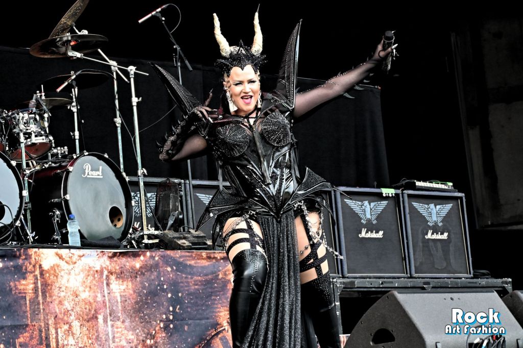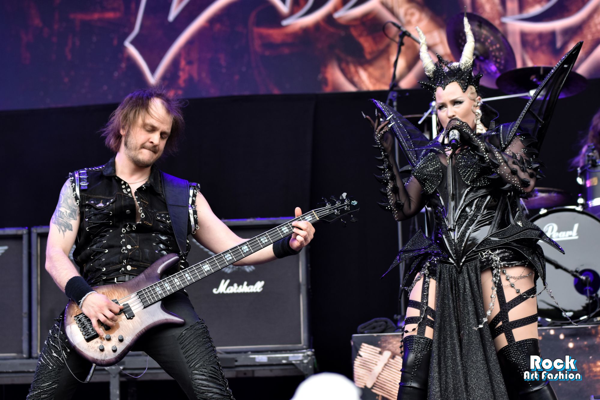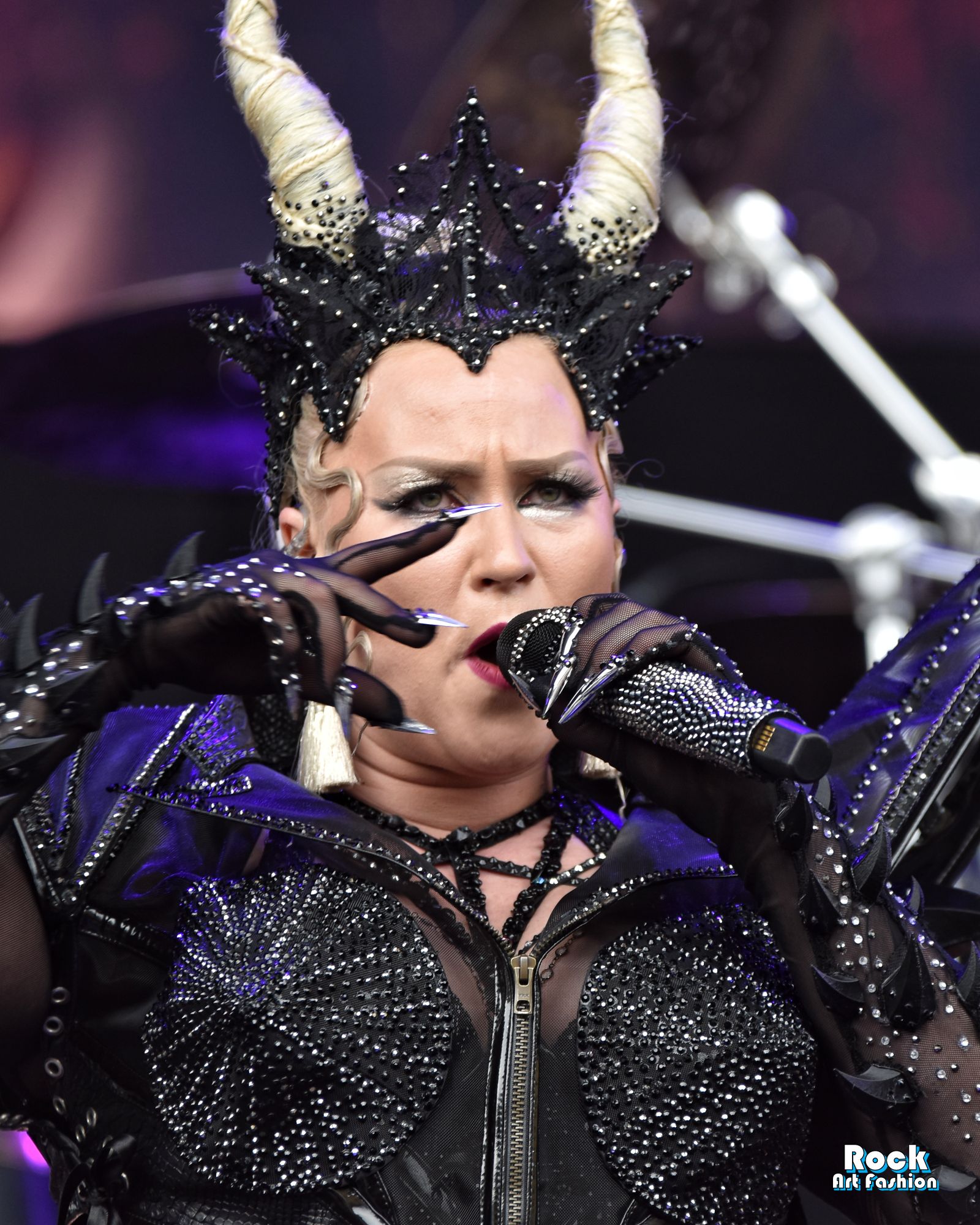Deuxième sur scène à 18h30, le groupe finlandais Battle Beast sera une grande découverte pour moi. 15 ans d’existence, 6 albums à leur actif, le combo emmené par chanteuse Noora Louhimo, va nous offrir un puissant mix de heavy et de power métal tendance symphonique combiné à des éléments pop très rythmés et surtout des refrains accrocheurs imparables.