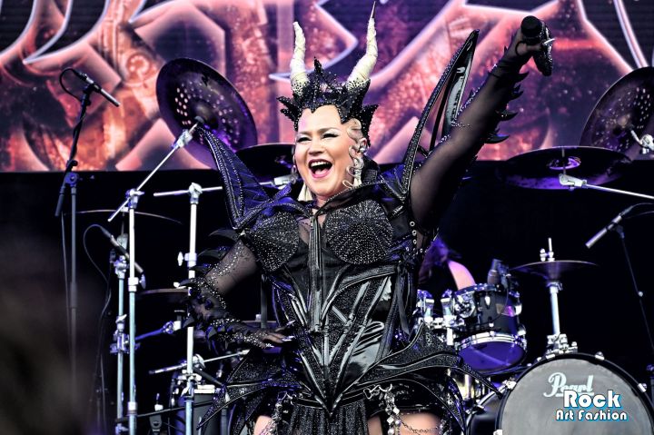 A real vocal tornado, she attracts all the attention and favor of the audience who fully react to her requests: to sing the NaNaNaNa on the beginning of Where Angels Fear To Fly – or to put the fists and horns in the air and accompany her in the rhythm of Hey Hey Hey on several tracks.