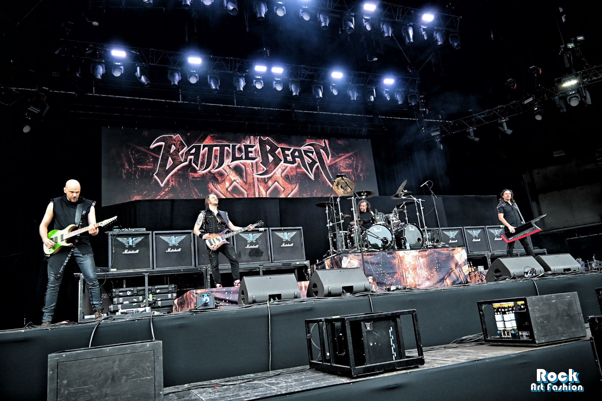 Second on stage at 6:30 pm, the Finnish band Battle Beast will be a great discovery for me. 15 years of existence, 6 albums to their credit, the combo led by the singer Noora Louhimo, will offer us a powerful mix of heavy and power metal with a symphonic tendency combined with very rhythmic pop elements and above all unstoppable catchy choruses.