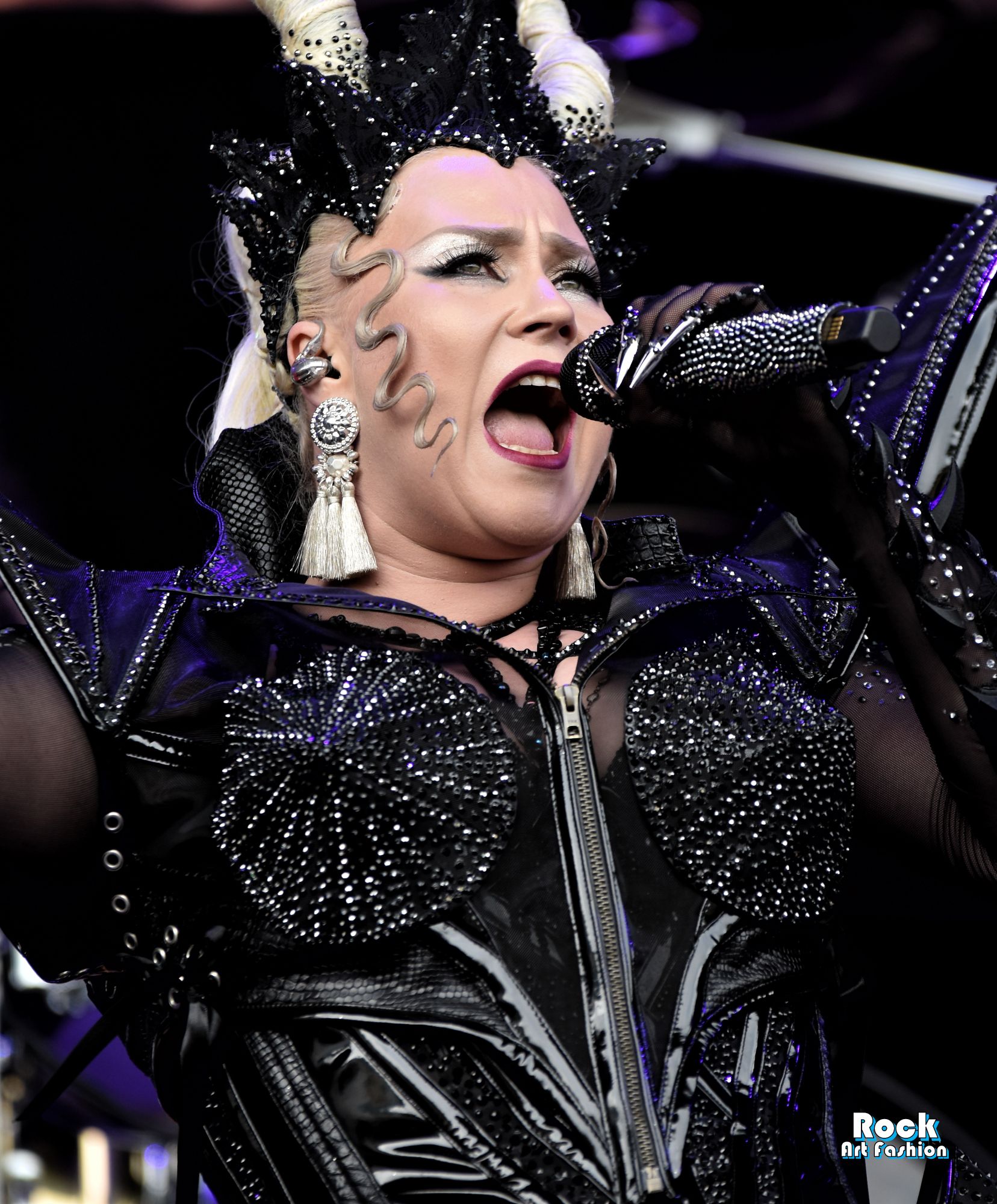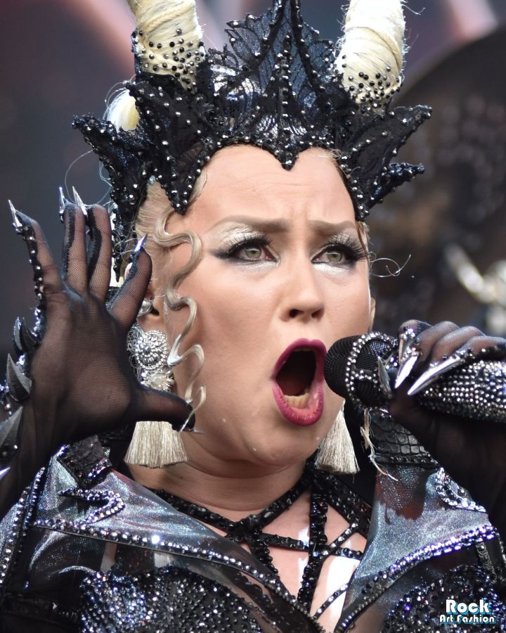 Voix colossale, souriante et lumineuse, elle porte un costume spectaculaire (signés Ilmatar Couture). Pas besoin de description regardez les photos !