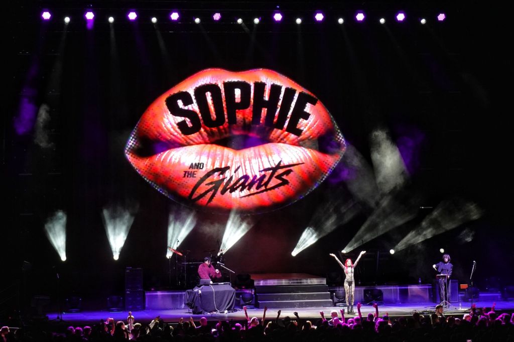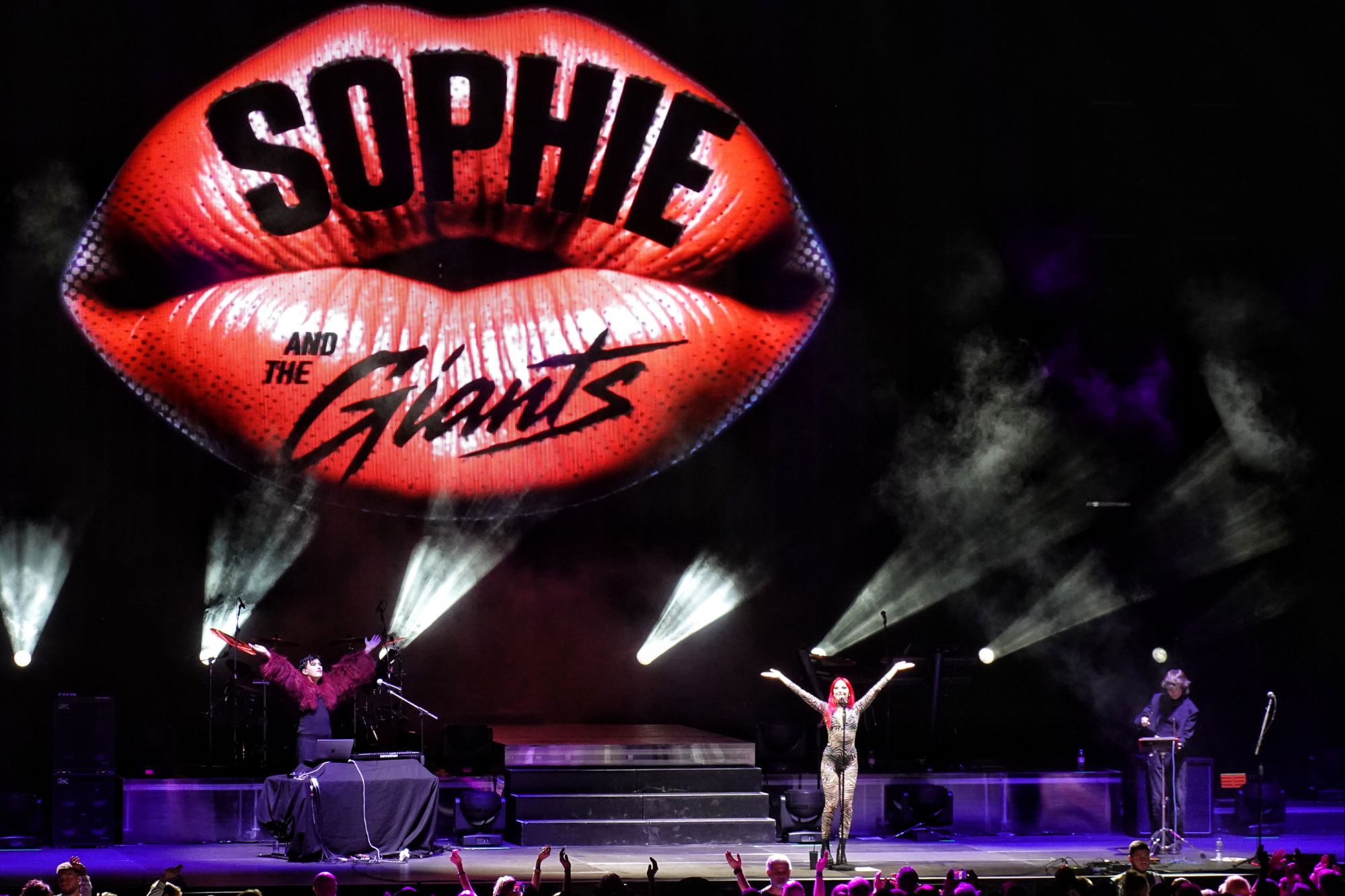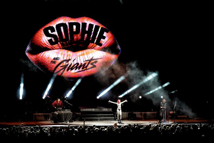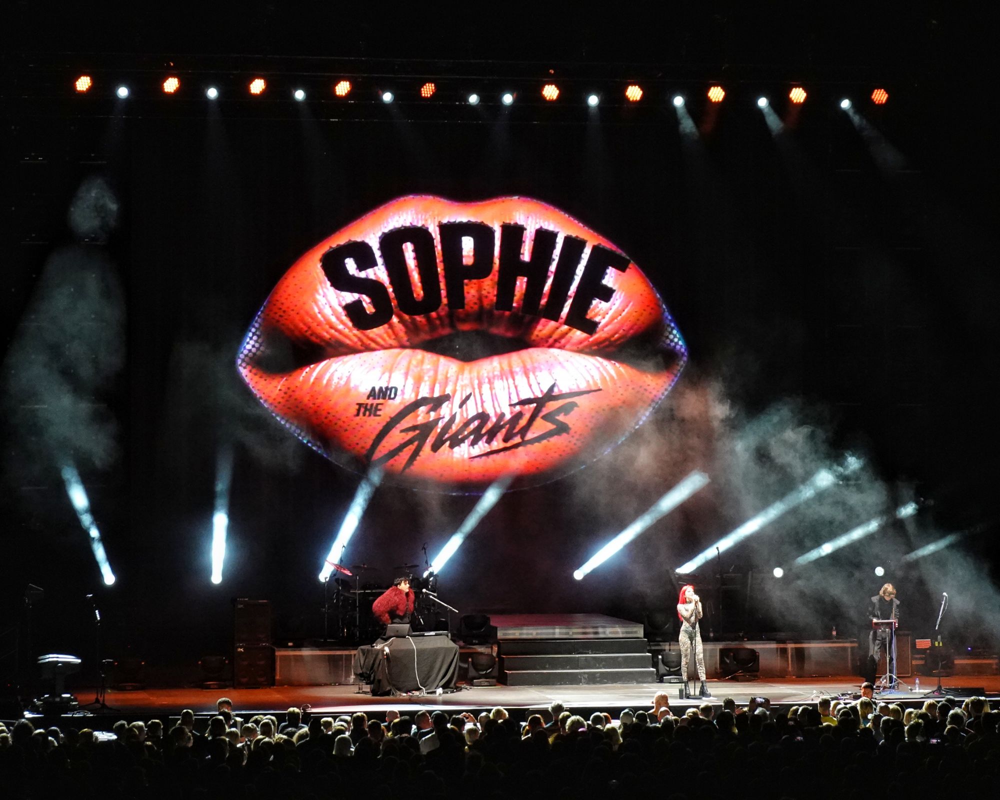 Deuxième groupe ce soir, SOPHIE AND THE GIANTS monte sur scène à 20h. Cette fois, c’est plutôt du electro-pop- disco très dancing qui semble plaire à beaucoup de monde, même si le public dans la fosse reste assez timide. Dans les gradins, autour de nous, il y a quelques fans qui connaissent les chansons par cœur et chantent avec ardeur.
