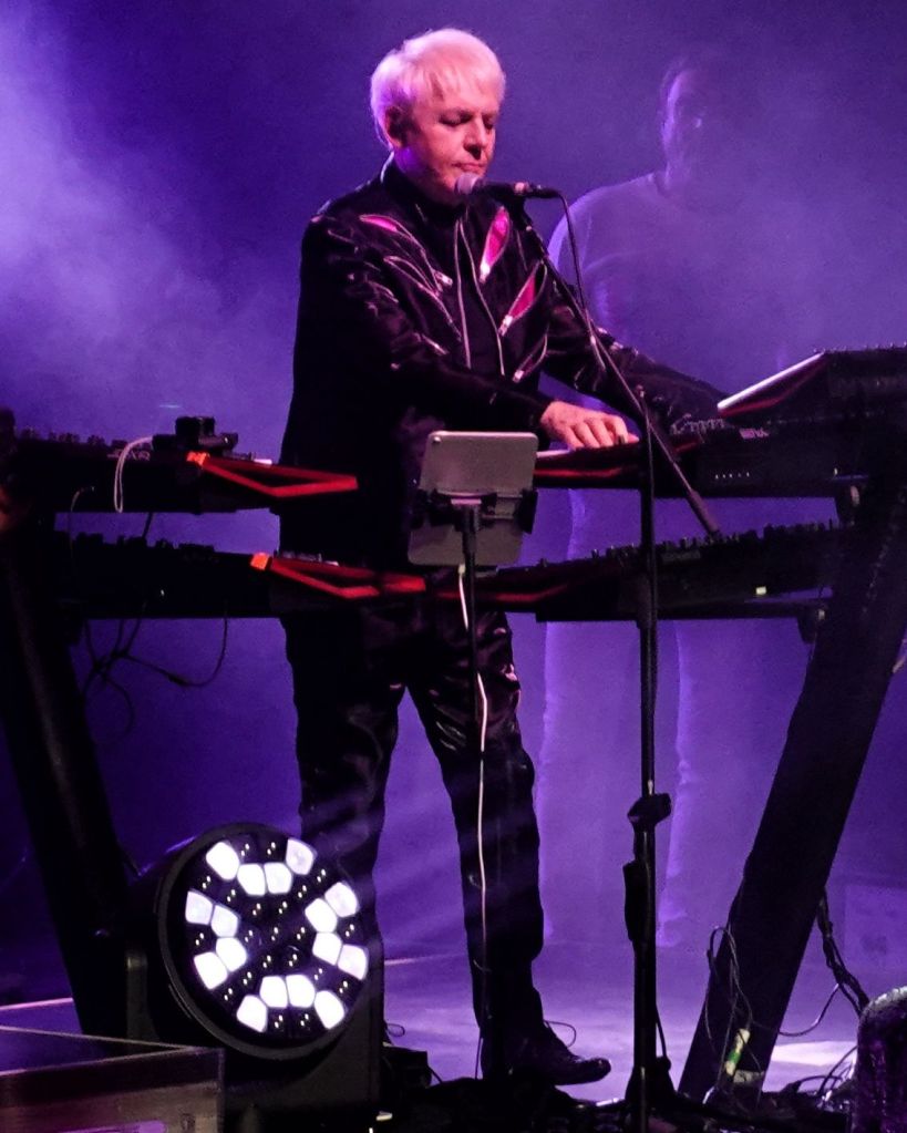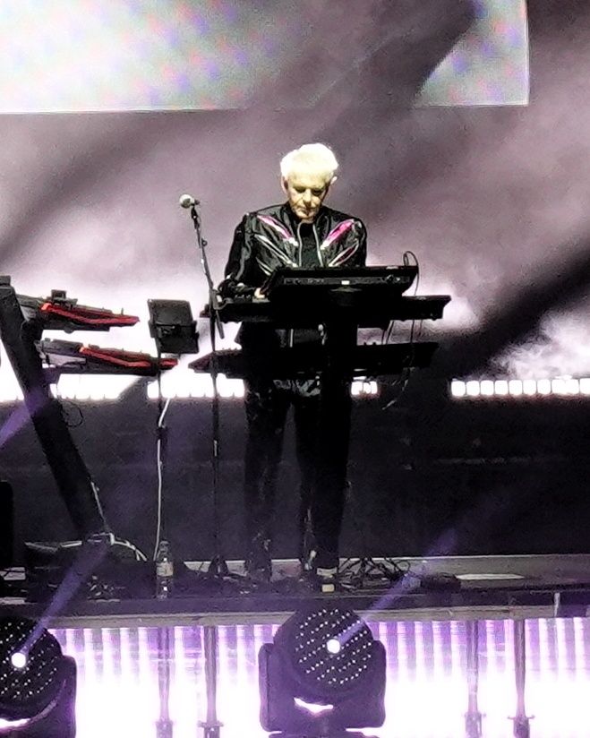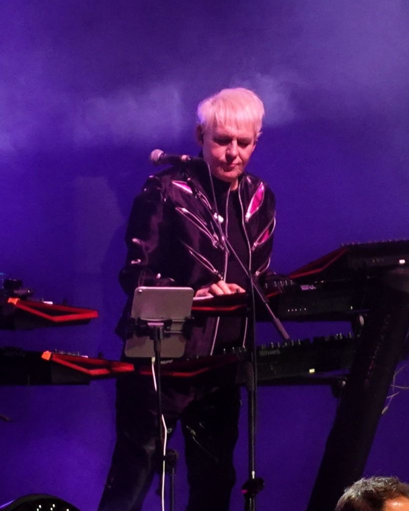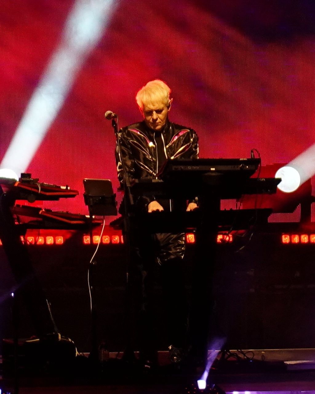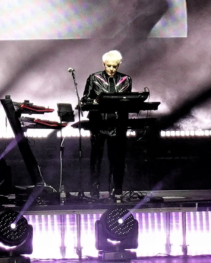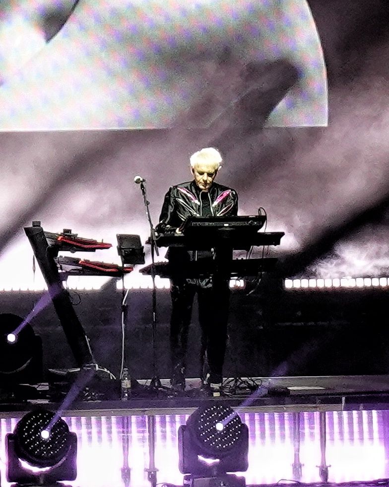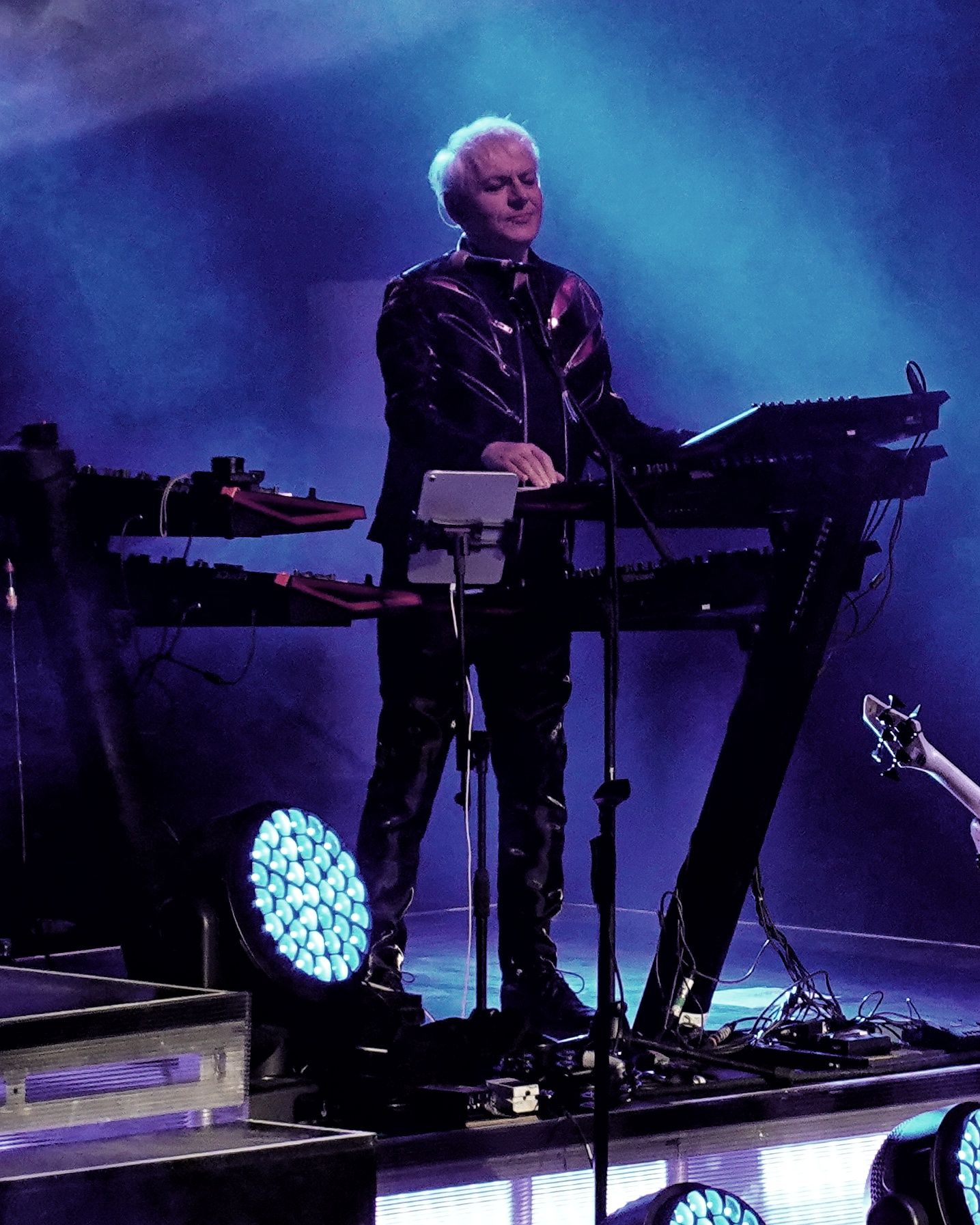 Nick Rhodes is as flamboyant and seductive as ever in his black suit, a perfecto-style jacket with a hint of pink at the zippers. Camera in hand, “The Controller” (as he is nicknamed) takes the opportunity from time to time to take pictures of his bandmates or of the audience (I would love to see these photos one day Mr. Rhodes !!). While Roger Tayloris classic elegant in his complete black look!
