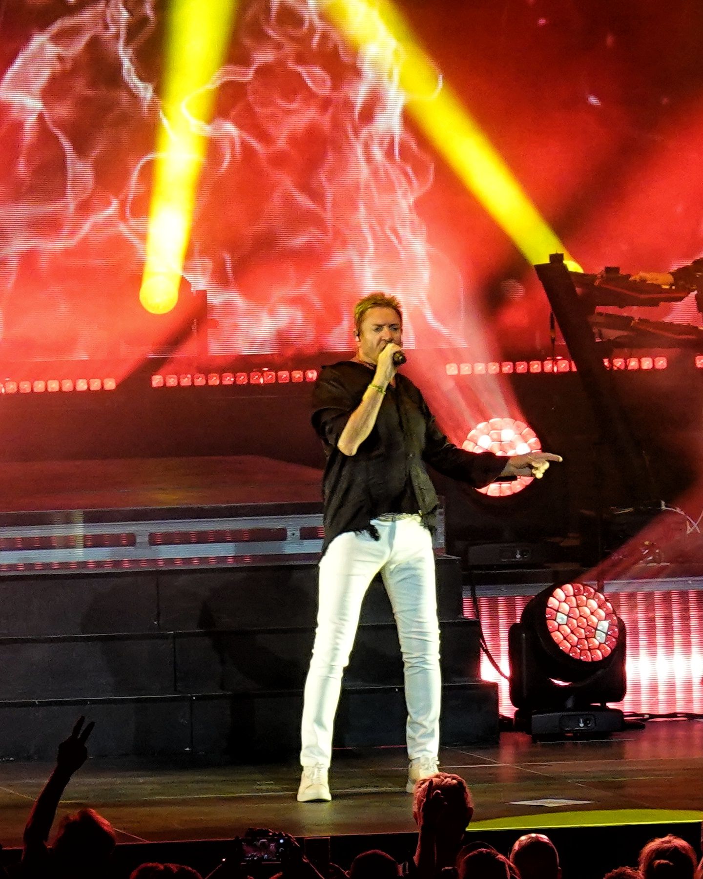 Notorious, All She wants is, Reach up for the Sunrise, les tubes se succedent. C’est clair que Duran Duran mise ce soir plutôt sur les hits d’années 80 et 90 avec seulement quelques incursions dans les albums plus récents Danse Macabre sorti en 2023 avec le revisité Lonely in Your Nightmare / Super Freak ou l’excellent Future Past sorti en 2021 avec le morceaux Invisible.