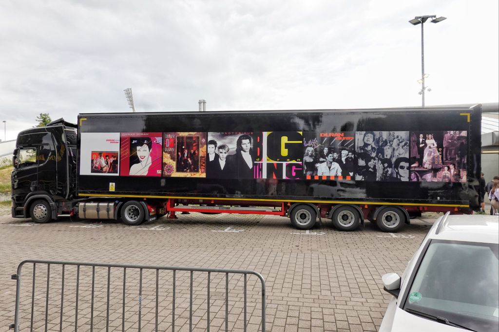 When we arrive, we see the famous Duran Duran truck, magnificently decorated with the covers of the band’s albums, parked in front of the artists’ entrance and of course, we hurry to take pictures. It’s still early (6:30 p.m.) but many fans are already there.
