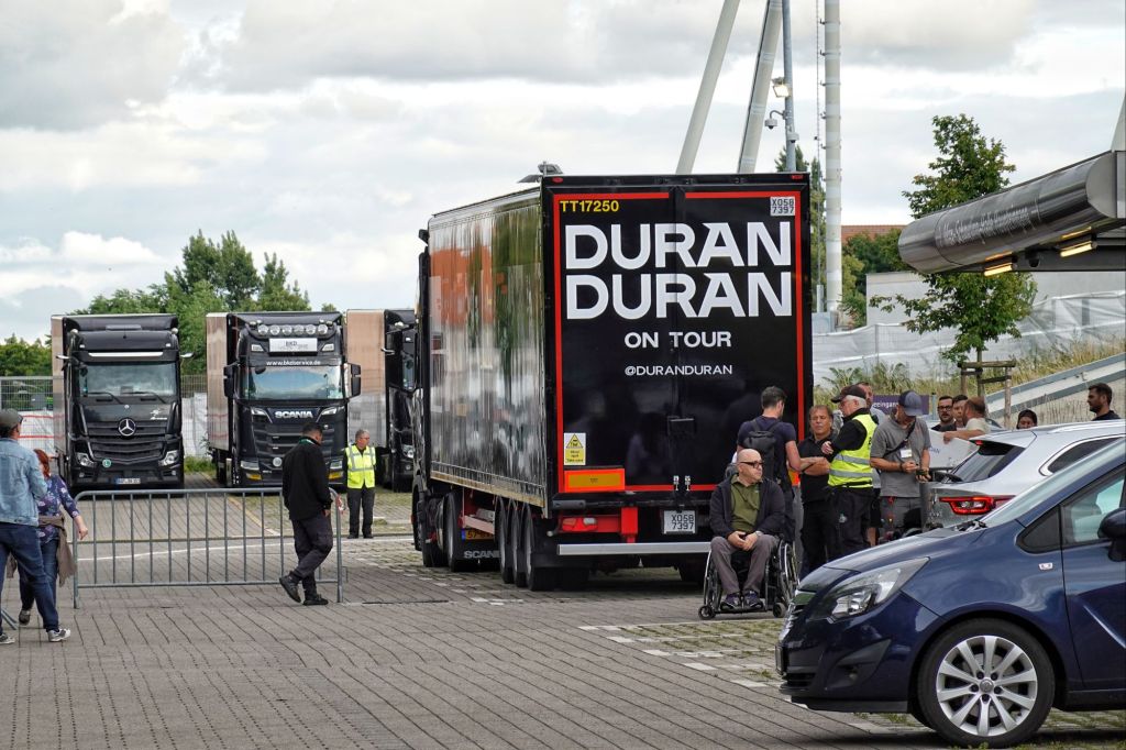 En arrivant, on aperçoit le fameux camion Duran Duran, magnifiquement décoré avec les pochettes des albums du groupe, garé devant l’entrée des artistes et évidement on s’empresse pour prendre de photos. C’est encore tôt (18h30) mais des nombreux fans sont déjà sur place.
