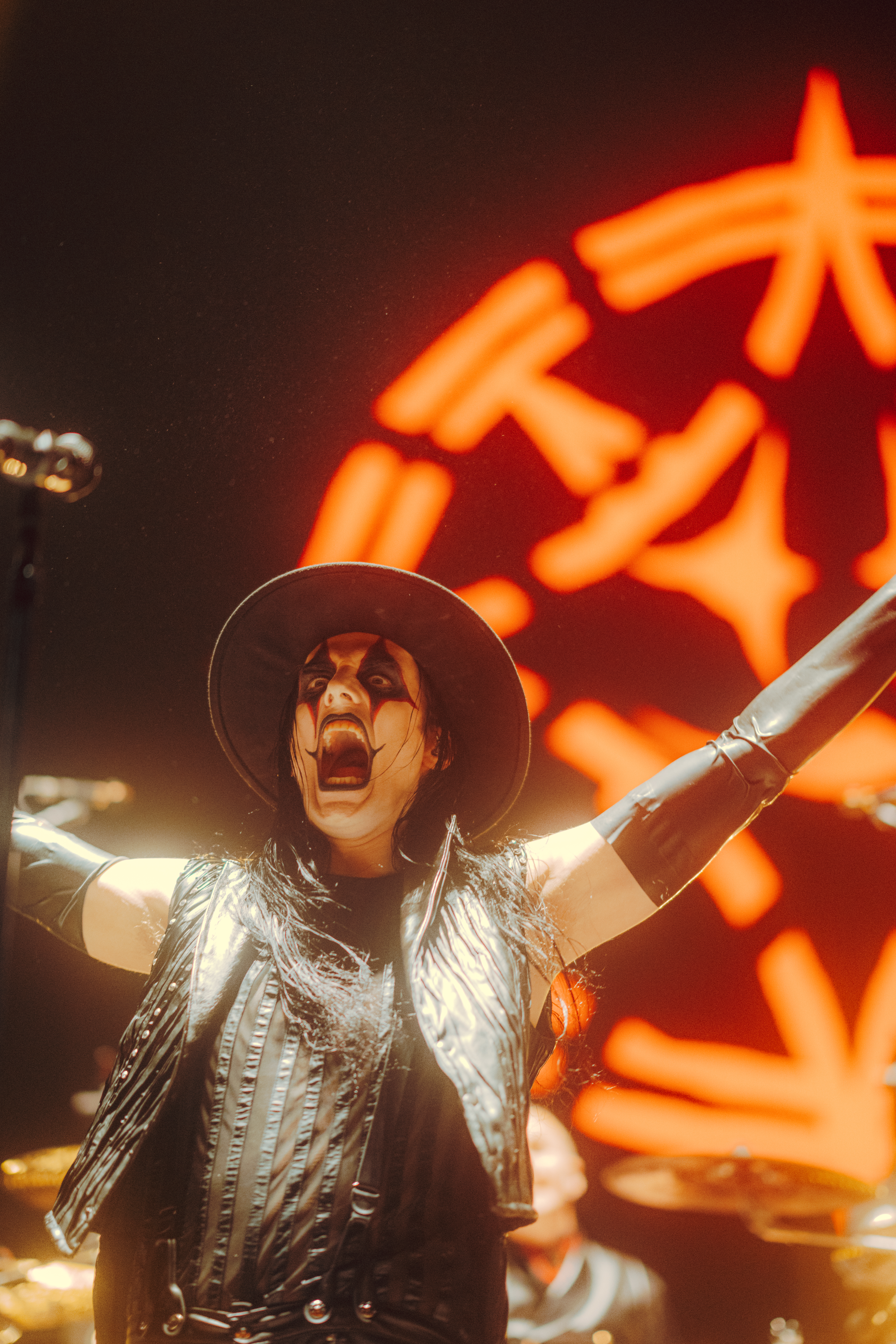 The name of the band is displayed in large luminous letters at the back of the stage and the musicians wearing their usual costumes and make-up launch into their swirling and coordinated headbanings. It doesn’t take more for the pit to start shaking, and not only, because in the stands where we are sitting there seem to be some big fans too!