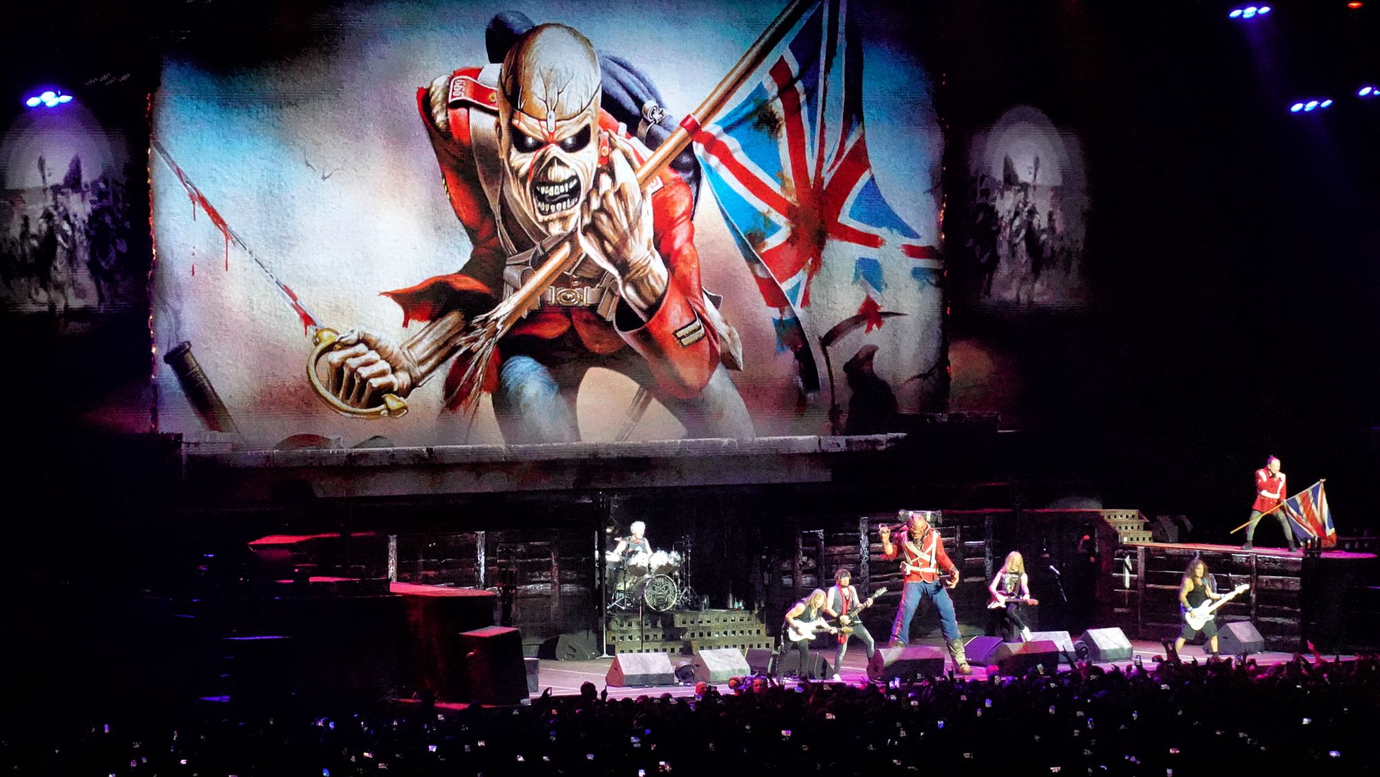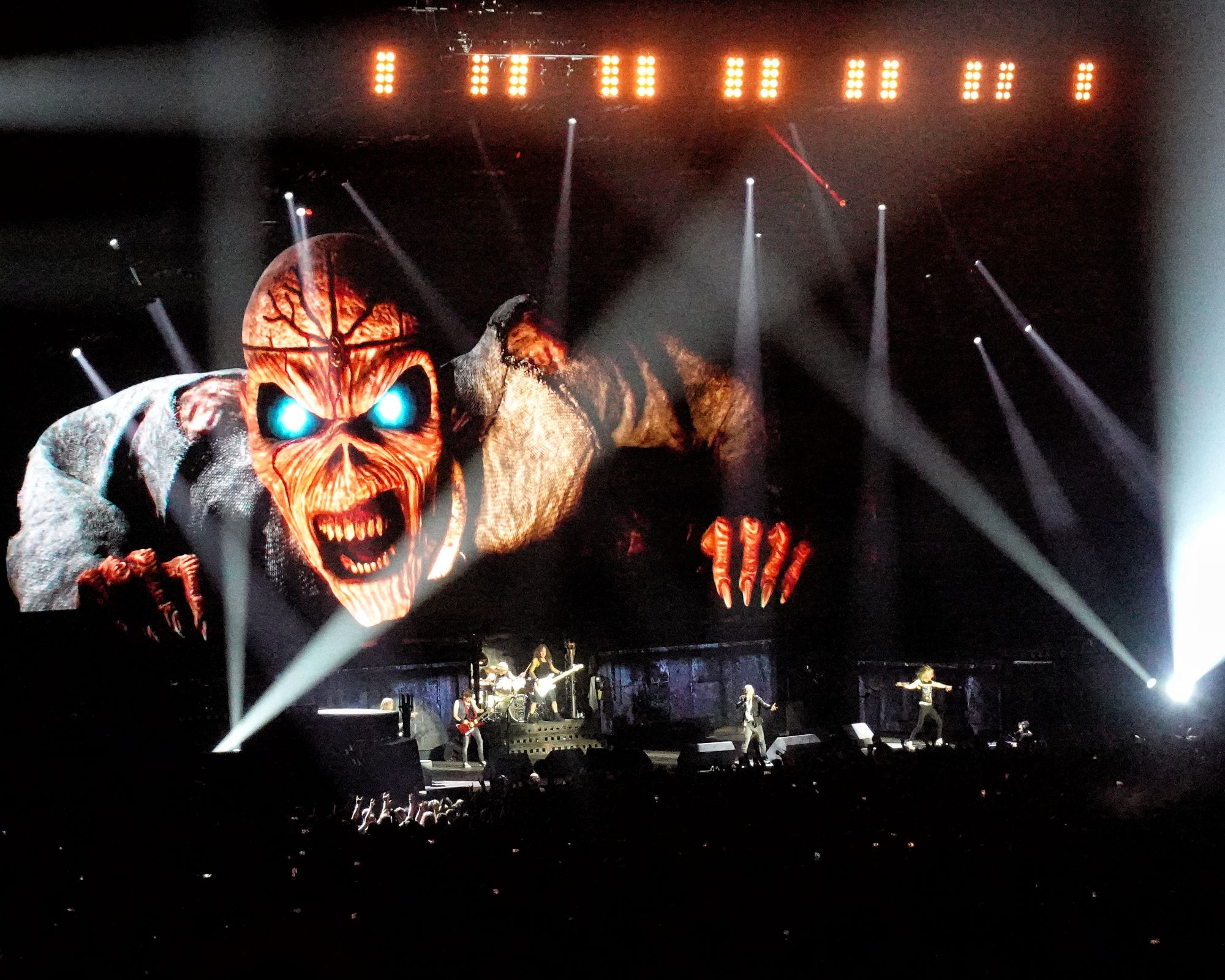 Un Eddie gigantesque aux yeux rouges, habillé de la même manière que Bruce, fait une apparition redoutable sur Killers. Avec une hache ensanglantée à la main, il marche à grands pas sur scène et semble vouloir la balancer sur la tête du pauvre Janick Gers. Le public est comblé et se manifeste avec énorme ferveur. L’ambiance est électrique.