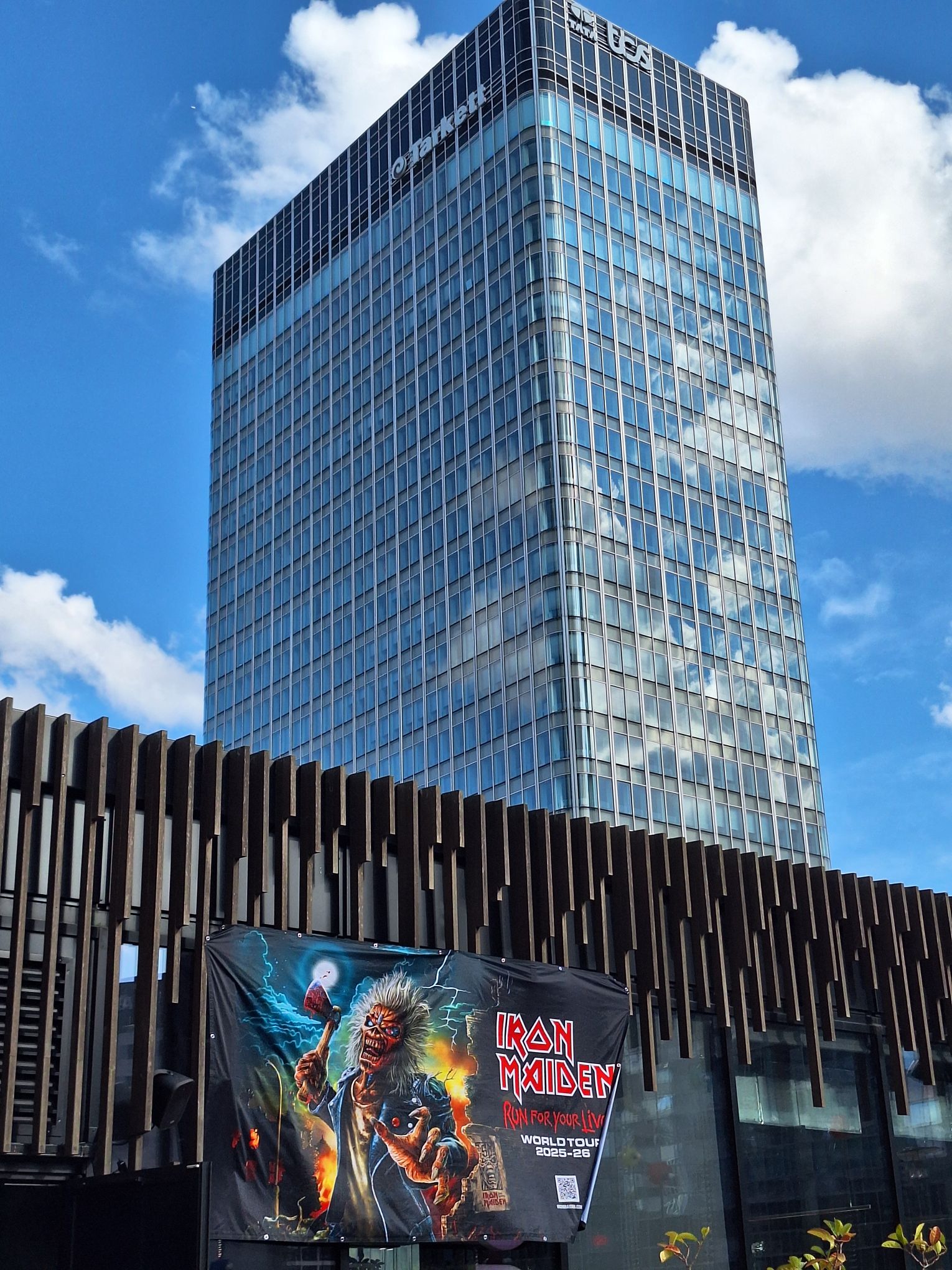 A l’occasion, l’Esplanade de la Défense, le quartier d’affaires parisien où se trouve le lieu de l’évènement, la plus grande salle couverte d’Europe, La Défense Arena (40 000 spectateurs) s’était transformée dans un va et vient continu de fans de tous les âges habillés avec des t-shirts, sweats et blousons arborant Eddie, la célèbre mascotte iconique du groupe qui apparait sur toutes les pochettes d’albums.