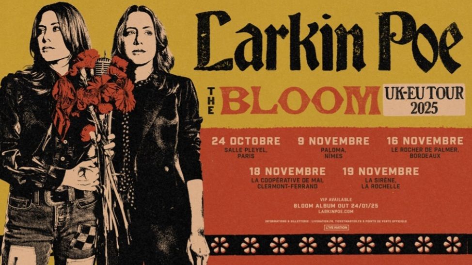 On October 24, at the mythical Salle Pleyel in Paris, an electric atmosphere floated in the air. That evening, LARKIN POE, formed by sisters Rebecca and Megan Lovell, was performing in the capital on the occasion of the European tour that accompanies their album Bloom, released in January 2025.