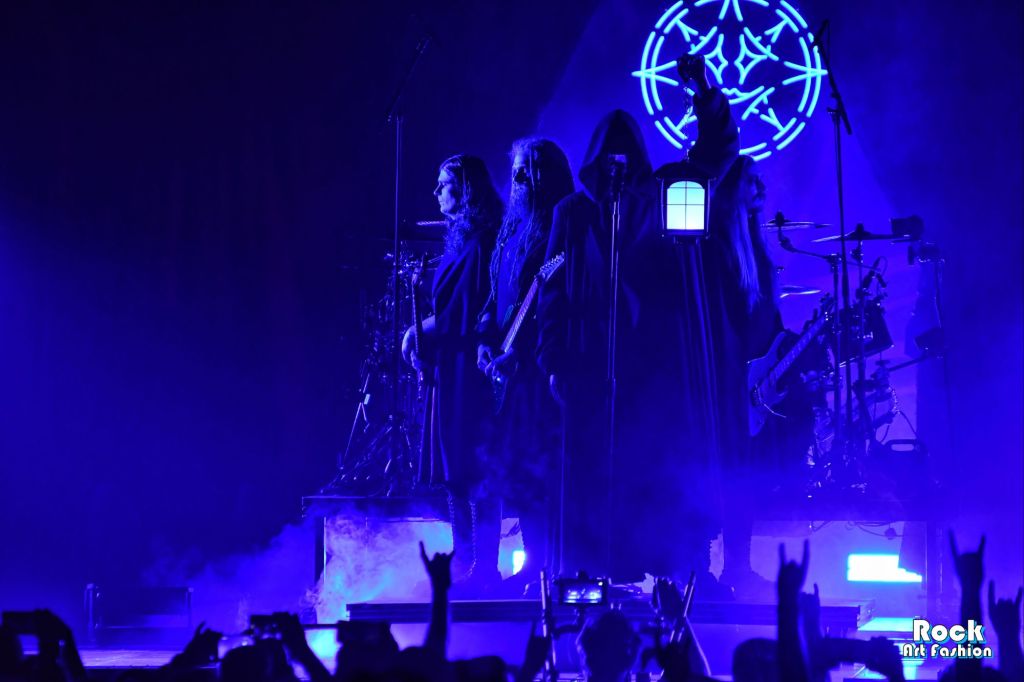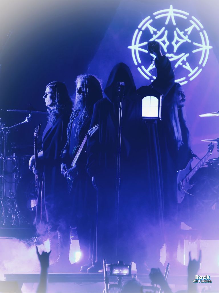 The battery slowly splits in two. A platform rises, revealing the musicians as if they were floating above the waves. Johannes Eckerström appears hooded, a lantern in his hand suspended in the air, guitarists Jonas Jarlsby and Tim Örhström, as well as bassist Henrik Sandelin surround him, all dressed in long black capes. The scene takes on the appearance of a mystical procession. The slowness of the opening track envelops the hall in a ceremonial, almost spiritual atmosphere.